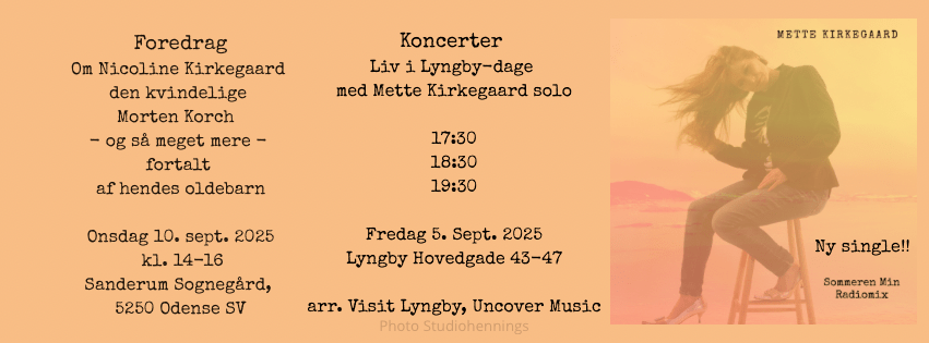 Hun skrev om tjenestepigen, der faldt i unåde. Præsten, der lod sig friste. Heksen, der trodsede tidens opfattelse af kvindens rolle. Med over 20 romaner i bagagen var Nicoline Kirkegaard (f. 1859-d. 1924) en af sin tids meget læste og elskede forfattere. Hendes fortællinger var dramatiske, psykologisk dybere og skildrede livets mørke og komplekse sider – i kontrast til den idylliske landlivsfortælling, vi kender fra Morten Korch, som hun ellers ofte har været sammenlignet med. På trods af sin folkelige succes blev Nicoline Kirkegaard næsten glemt efter sin død, selvom hendes værker blev rost af både Berlingske Tidende og Herman Bang. Hendes forfatterskab har dog vakt ny interesse, og der er endda skrevet speciale om hendes værker, der belyser hendes betydning for dansk litteraturhistorie. Men hun var meget mere end en forfatter. Hun var lærerinde på sin og mandens privatskole i Aarhus, mor til 11 børn, og en kvinde med en markant stemme, der udfordrede sin samtids normer. Om foredraget: Foredraget bliver fortalt af Nicoline Kirkegaards oldebarn, tekstforfatter og sangskriver Mette Kirkegaard, der tager publikum med på en rejse ind i sin oldemors liv og litterære univers. Med uddrag fra hendes værker, familiefortællinger og billeder fra hendes samtid bliver Nicoline Kirkegaards historie levende igen.