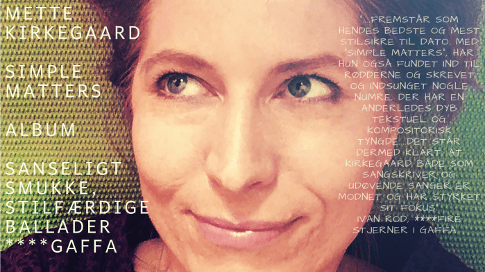 22. okt kl. 19, 28. okt. kl. 14. Hør også Mette fortælle i Kulturmagasinet på FCMR Frederikshavn Kultur og Musik radio: om sit anmelderroste album “Simple Matters” (****Gaffa) og om nordjyske aner…: FCMR 22.okt. kl. 19. Vært: Gitte Hansen